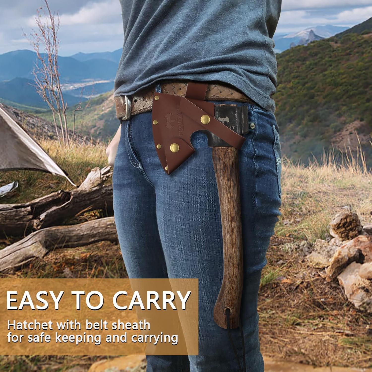 14.4″ Hatchet, Camping Axe, Survival Axe with Sheath, Bushcraft Hatchet with 1065 Carbon Steel and Beech Handle for Wood Chopping – Perfect for Outdoor Survival and Adventures