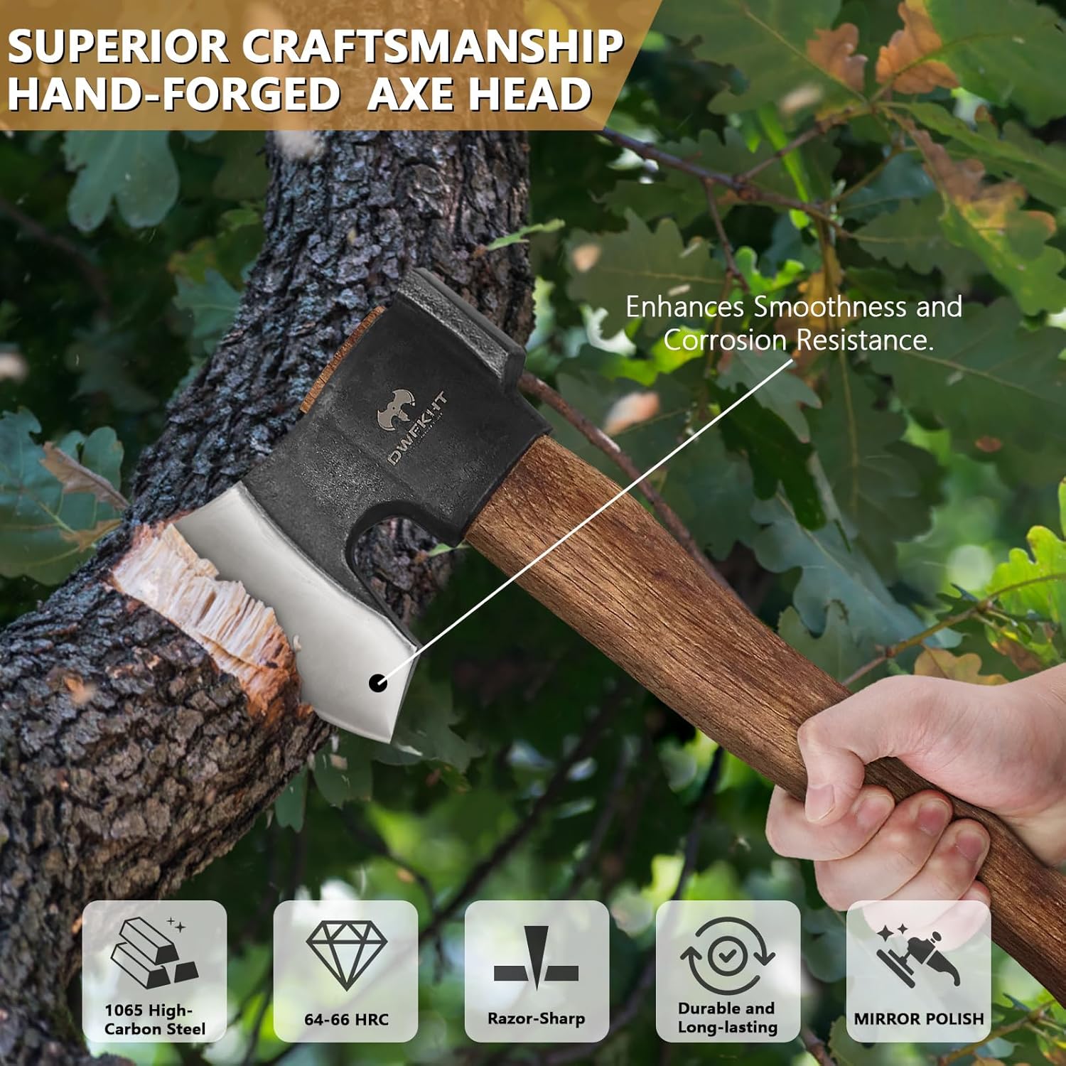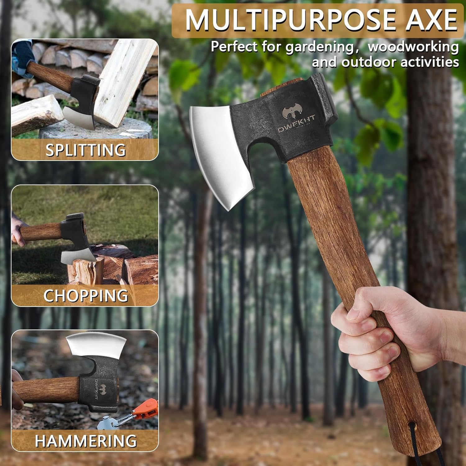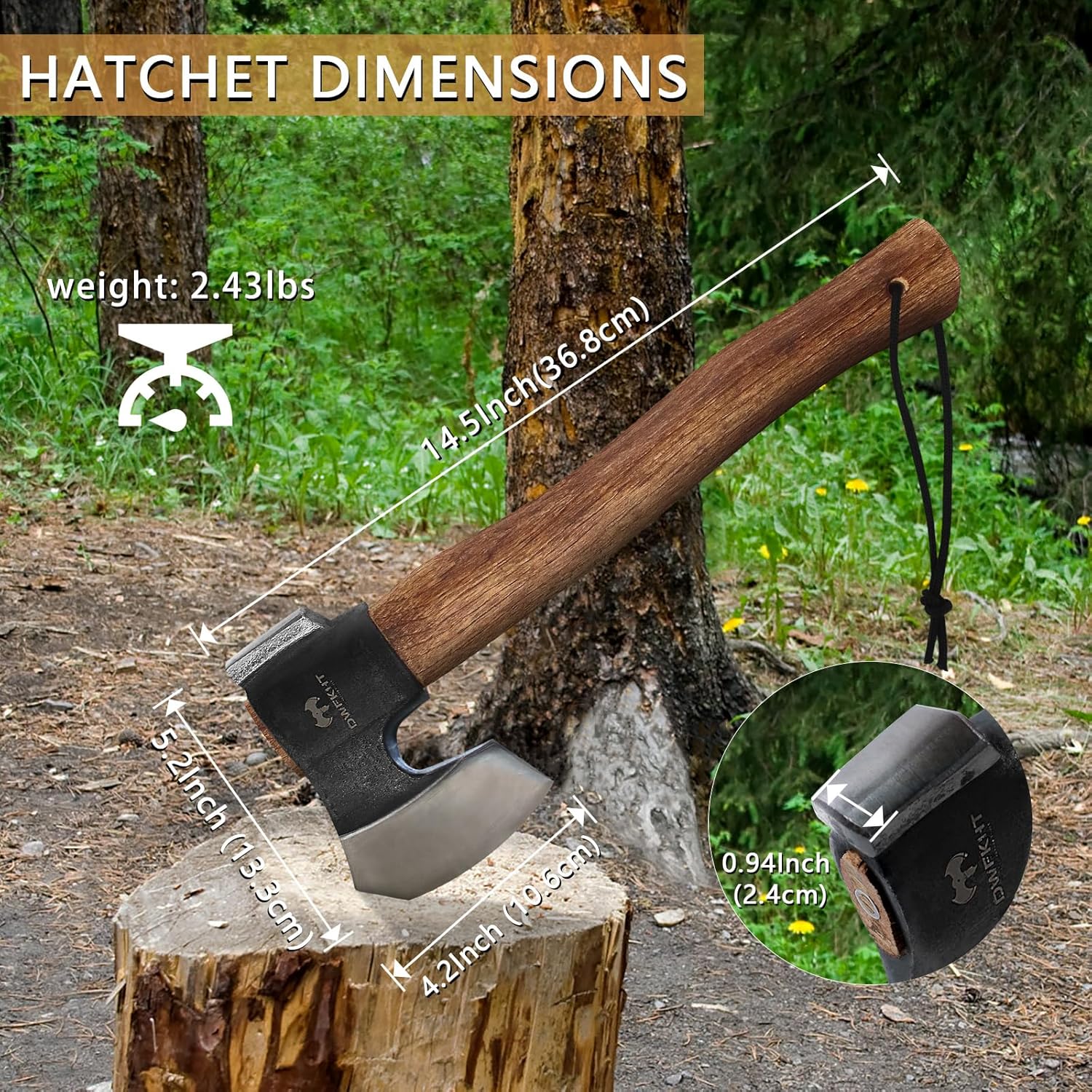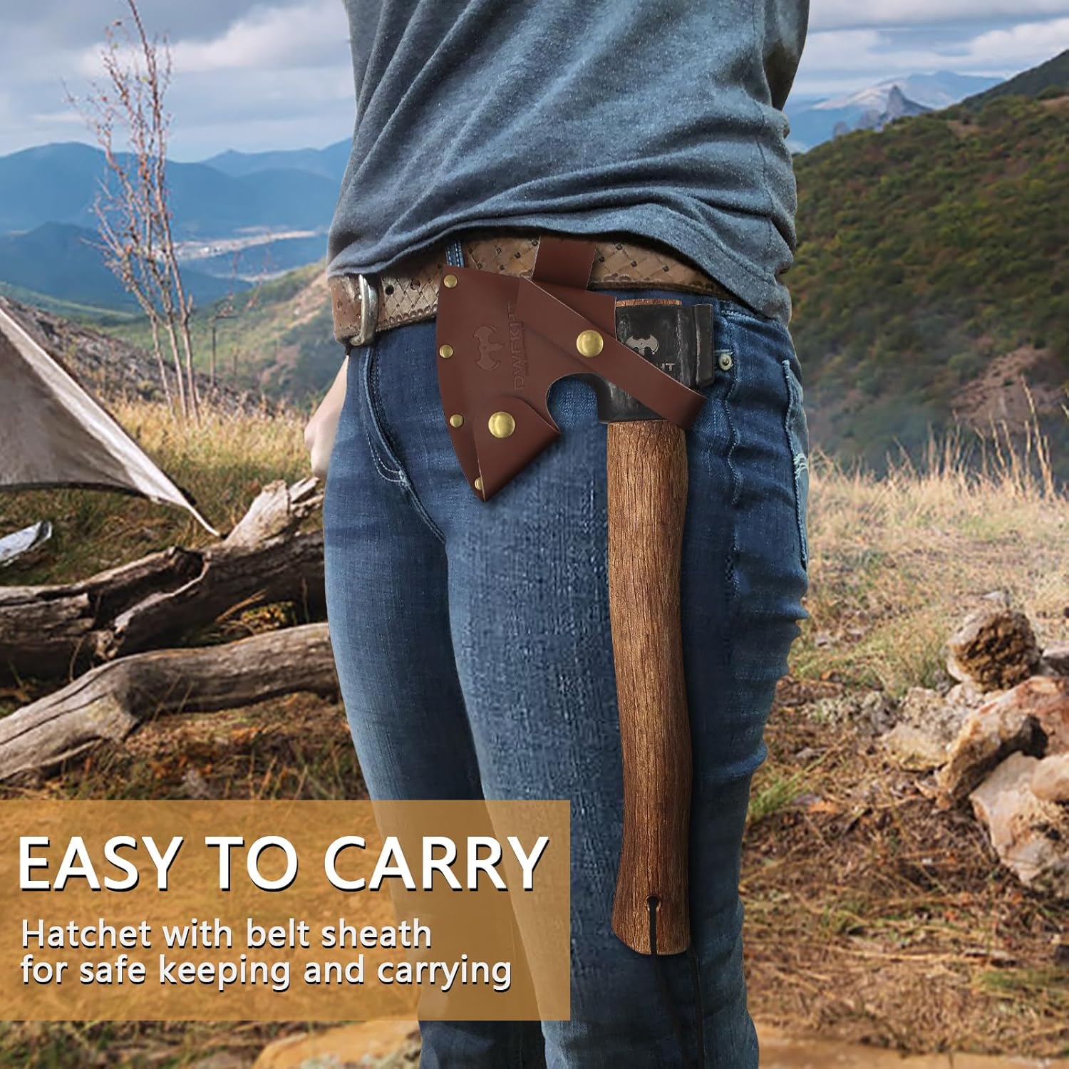 14.5″ Hatchet, Camping Axe, Survival Axe with Sheath, Bushcraft Hatchet with 1065 Carbon Steel and Beech Handle for Wood Chopping – Perfect for Outdoor Survival and Adventures