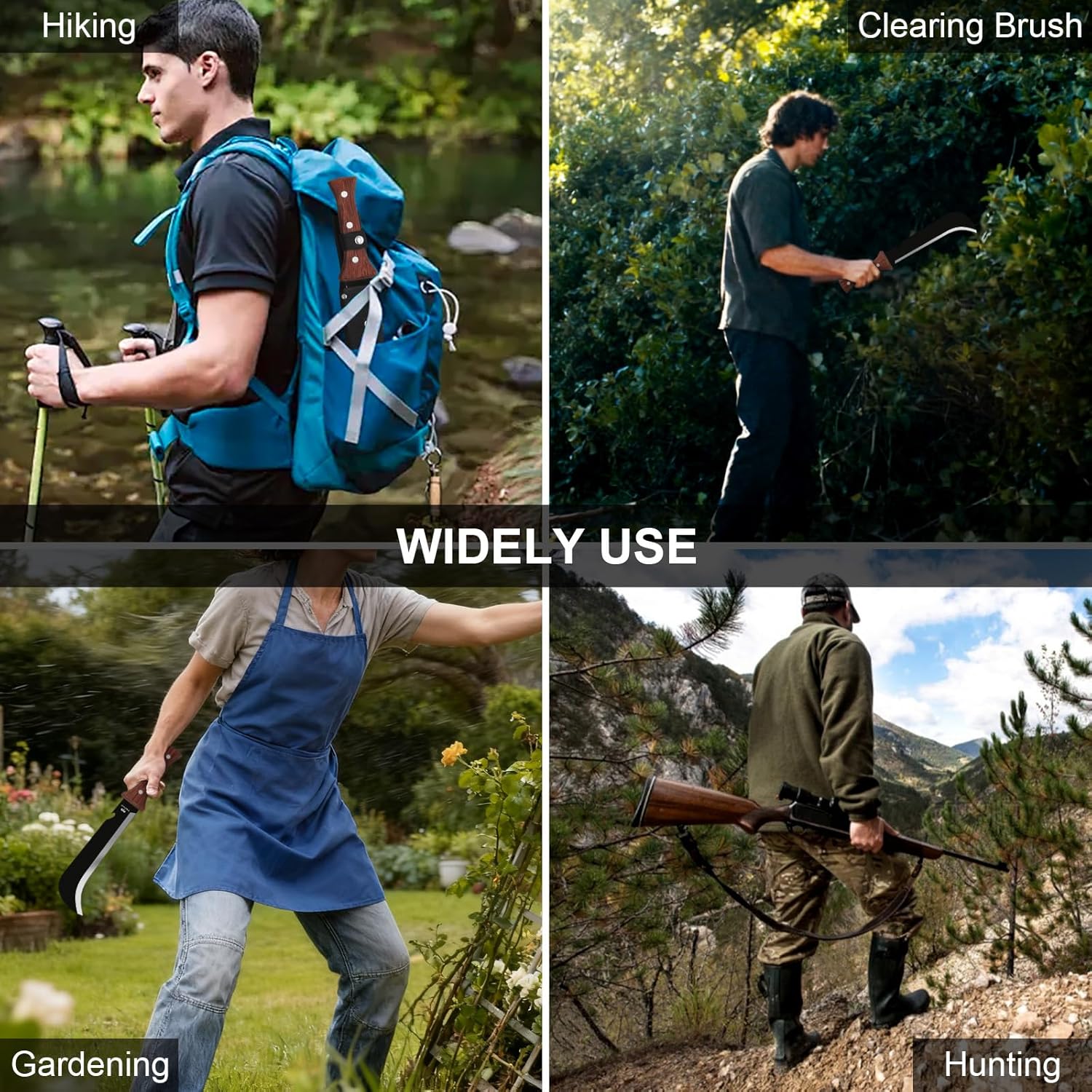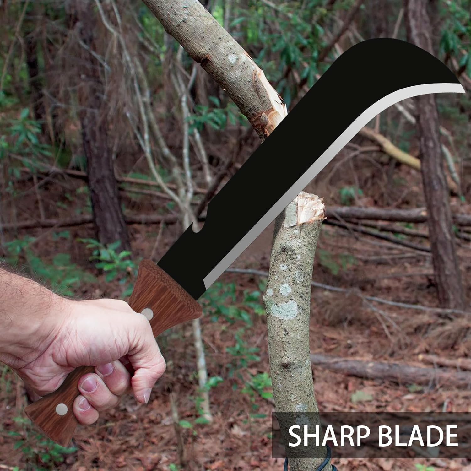 Billhook Sickle Machetes, 15.6″ Sharp Machete for Yard Work, Machete for Cutting Trees Heavy Duty, Gardening Machetes with No-Slip Wood Handle and Nylon Sheath, Sickle Knife Machetee for Grass