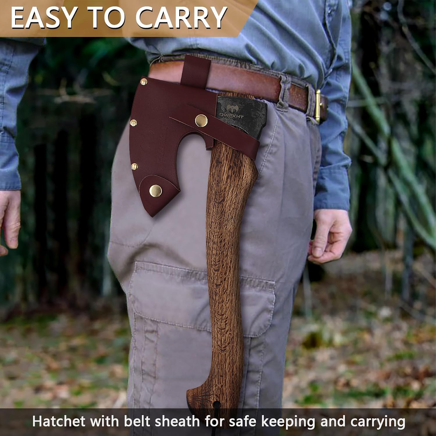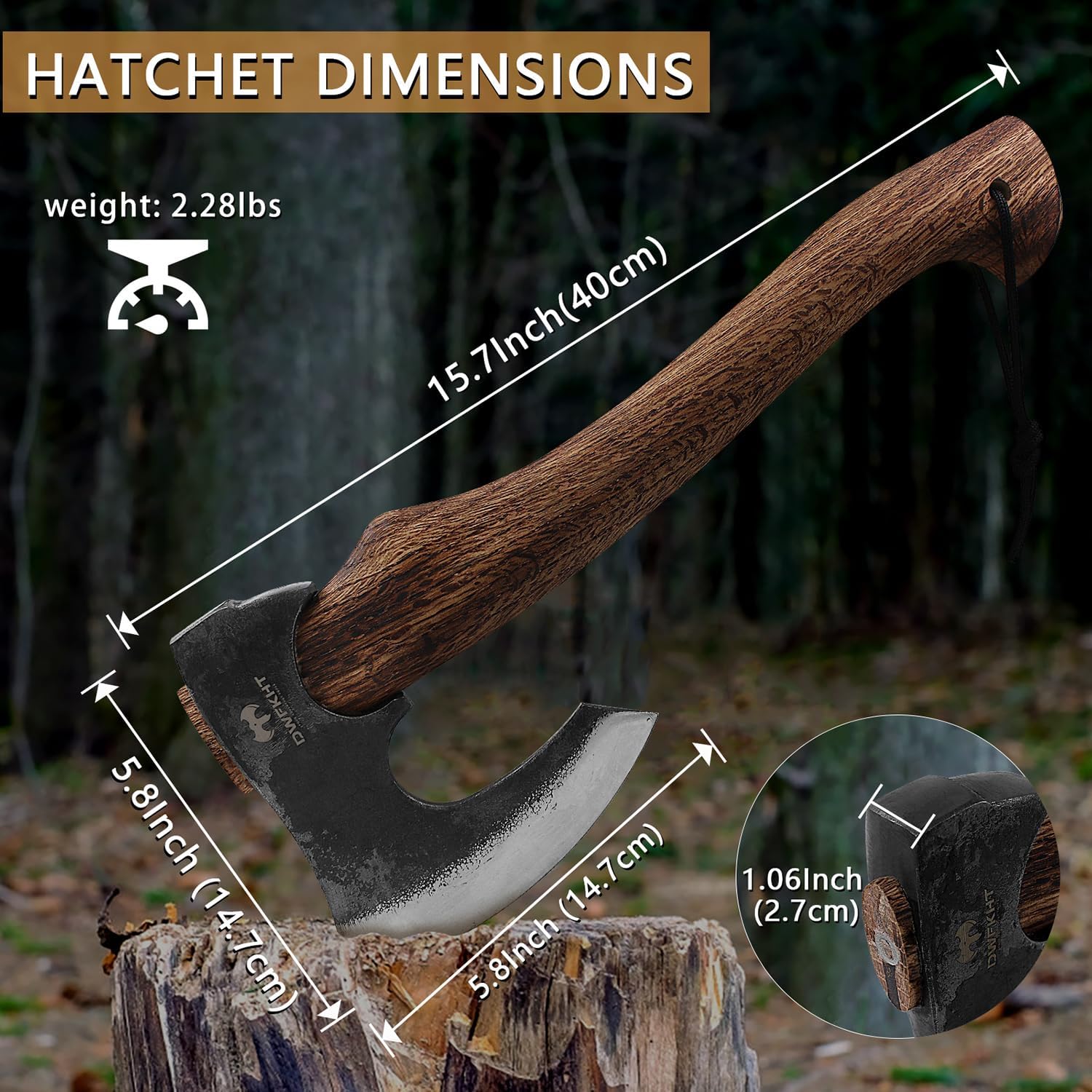 Hatchet, 15.7″ Camping Axe with Leather Sheath, Bushcraft Axe with 1065 Carbon Steel & Beech Handle, Survival Hatchet for Wood Splitting and Chopping – Perfect for Gardening and Outdoor