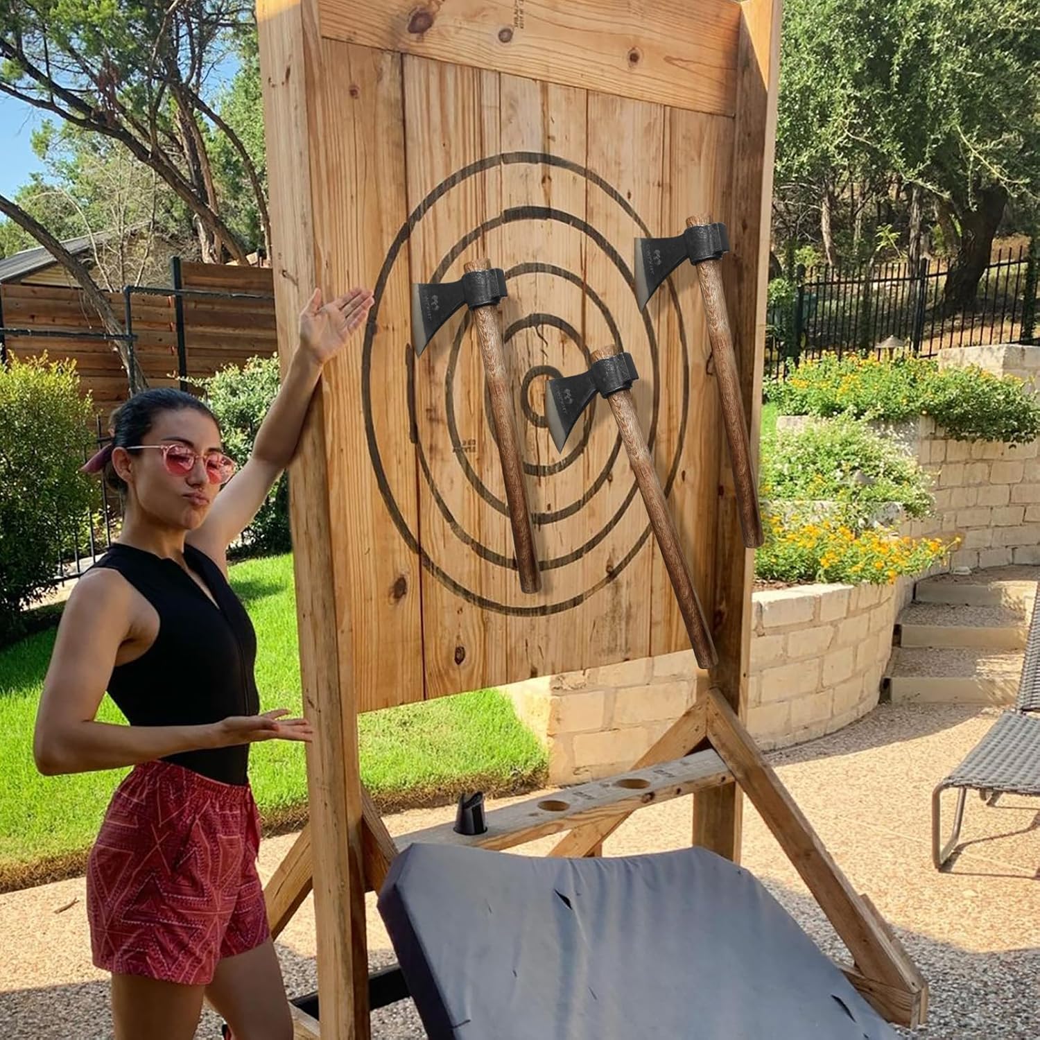 16.5″ Throwing Axe, 3 Pack Throwing Axes and Tomahawks with High Carbon Steel & Beech Wood Handle, Well Balanced, Great for Axe Throwiing Game, Recreationb and Competition