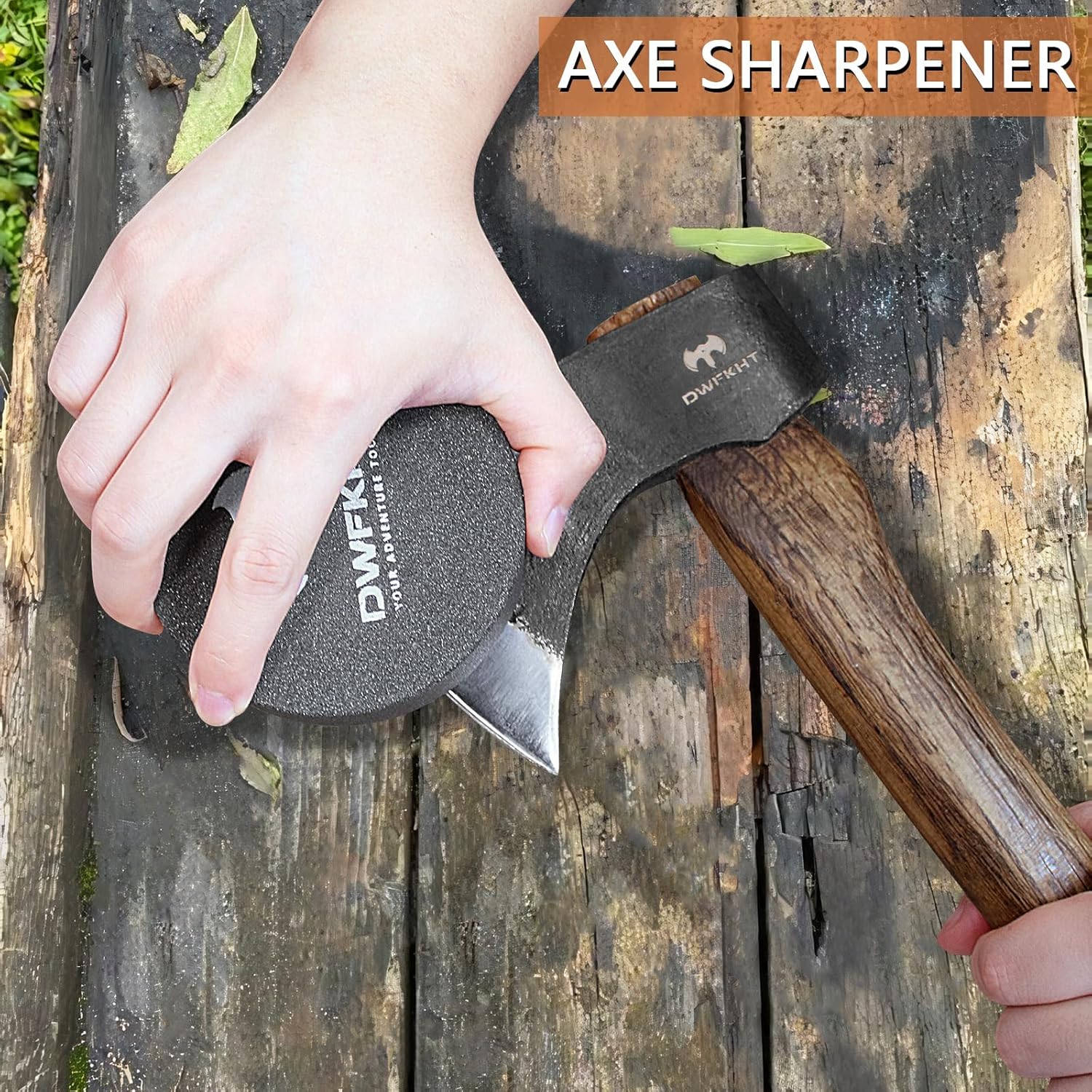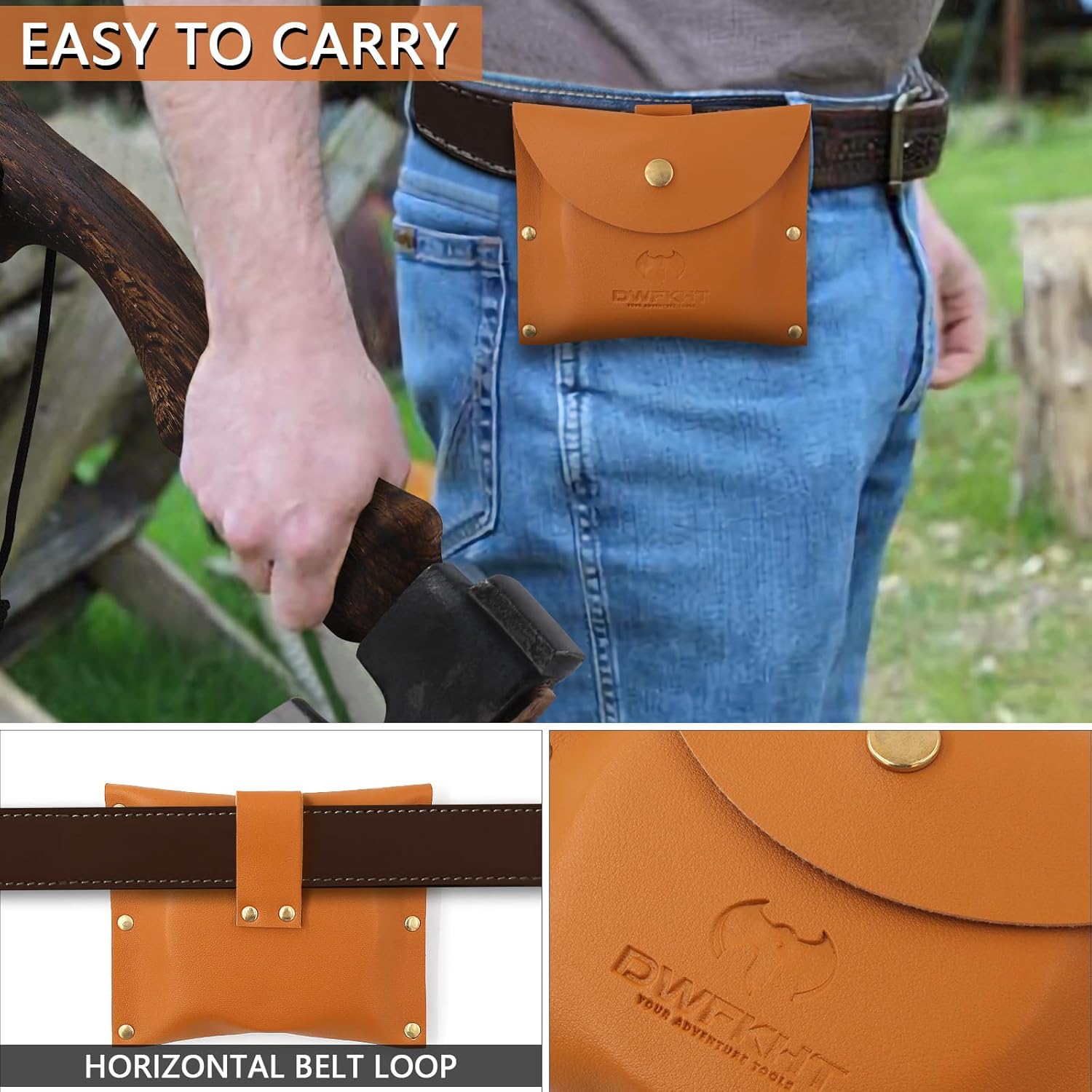 Axe Sharpener – Hatchet/Machete Sharpening Stone, Whetstone Blade & Tool Sharpener, Dual Grit Multi-Purpose Knife Sharpening Stone with Leather Sheath