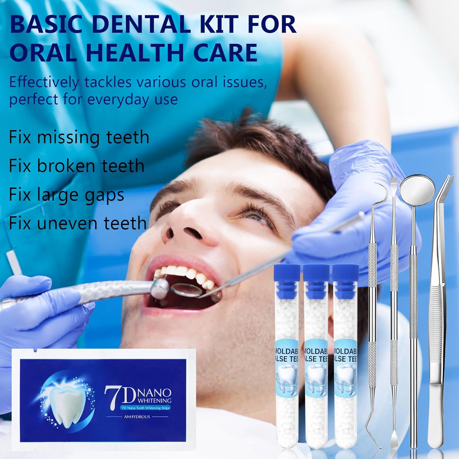Tooth Repair Kit, Moldable False Teeth, Tooth Replacement Missing Teeth, Teeth Filling Kit Permanent with 4 Dental Tool, Tooth Repair Kit for Broken Teeth, Temporary Tooth Filling Kit, Moldable Teeth